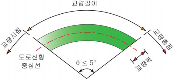 - 박스 거더교와 같이 곡률에 따라 곡선거더를 설치하는 경우 적용 제외